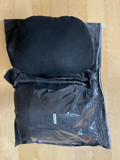 주문했던 제품은 안전하게 포장되어 왔고, 포장지를 제거 했을땐 목베게의 쿠션은 상당히 두껍고 푹신했다.