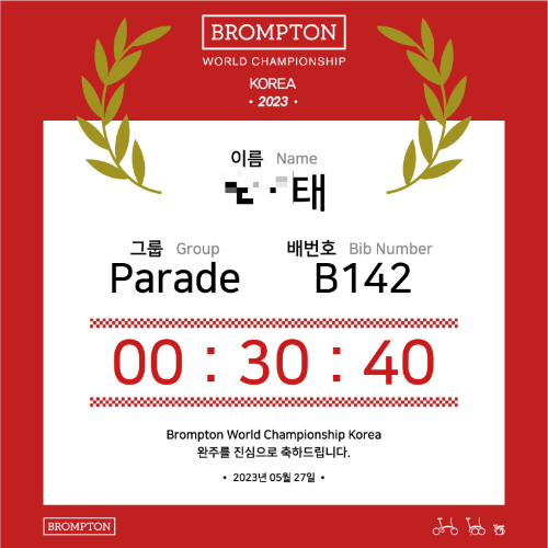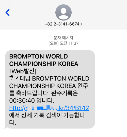 운영 본부에서 문자가 왔고, 네 바퀴에 30분 걸렸단다 ㅋㅋ 내가 잘 달린건지 물어볼 사람도 없고, 조용히 문자로 온 링크를 클릭했다.