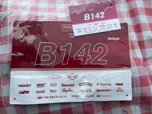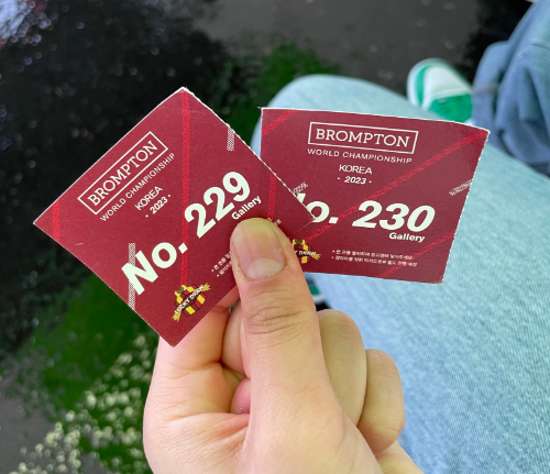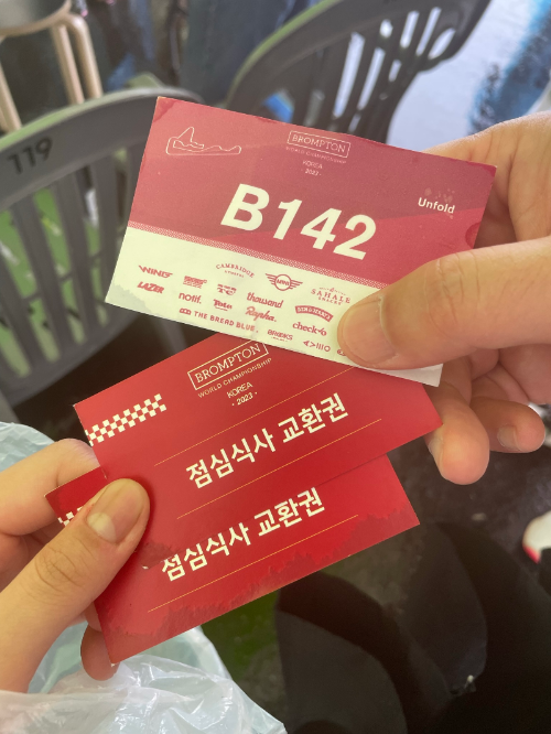 브롬톤을 어깨에 메고 운영본부로 향했고, 신분증 제시 후 배번과 기념품을 받았다.