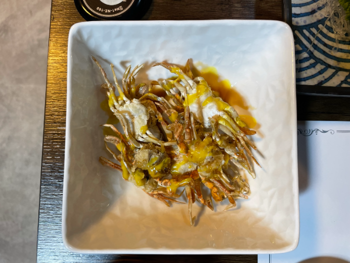 서비스로 나온 게튀김은 바삭바삭하고 고소했다!