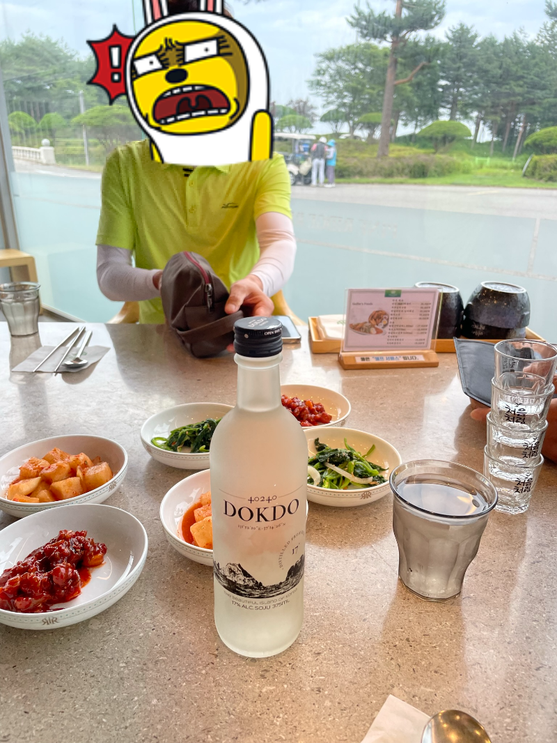 늘 하던 대로 해장국 4개와 일반소주를 먹어야 했지만, 일반소주를 팔지 않아서 어쩔 수 없이 독도소주를 마셔야 했다.
