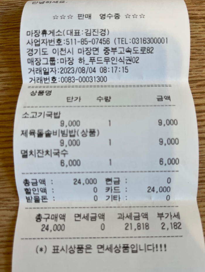 가격은 휴게소라 시중보다 비쌀 줄 알았는데 의외였다.
