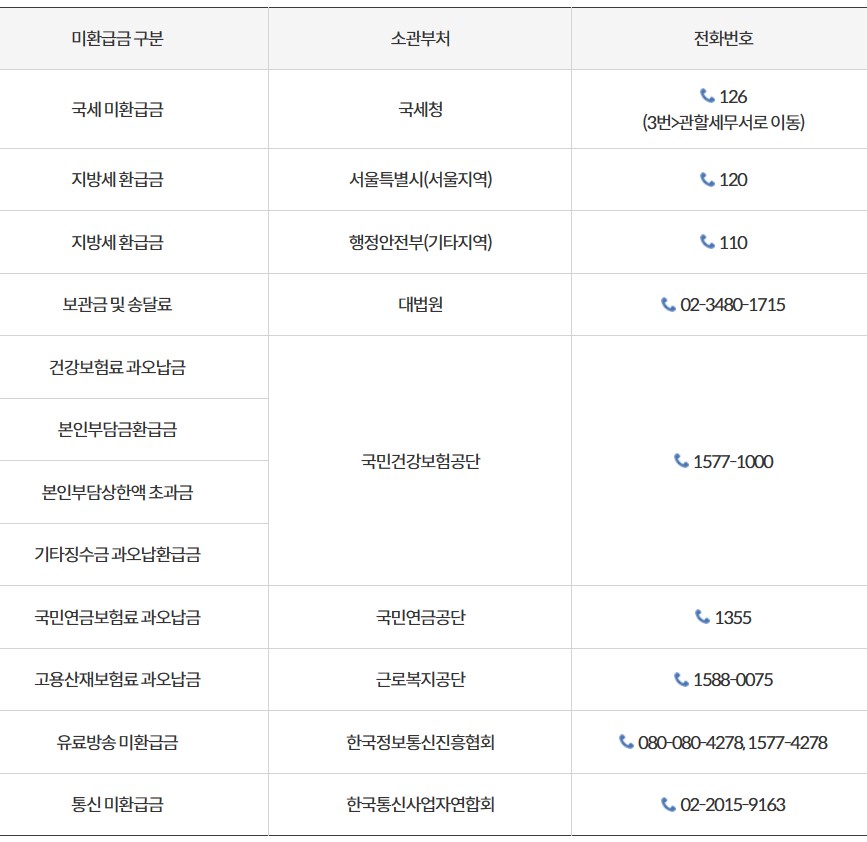 미환급금 신청 사이트
