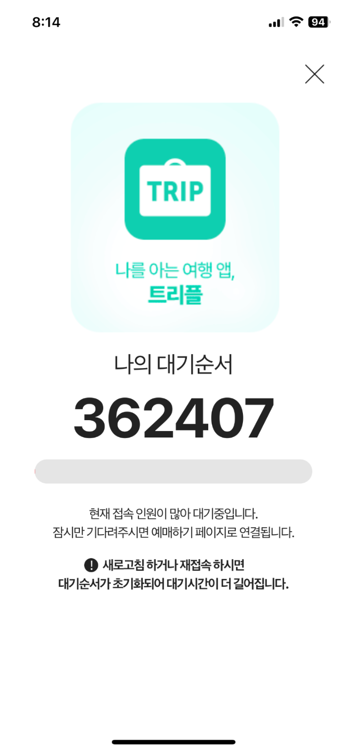 9만여 명의 웨이팅 중에 서버가 또 다운됐다.
