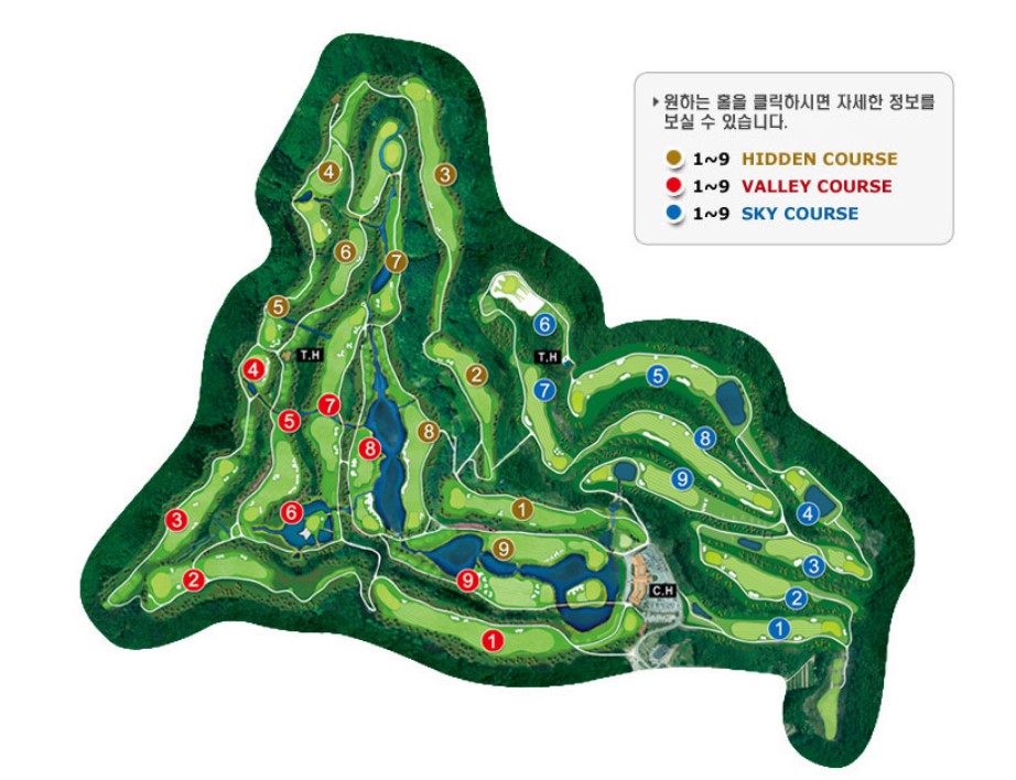 전체 코스를 보면 스카이 코스가 더 있어서 총 27홀이다.