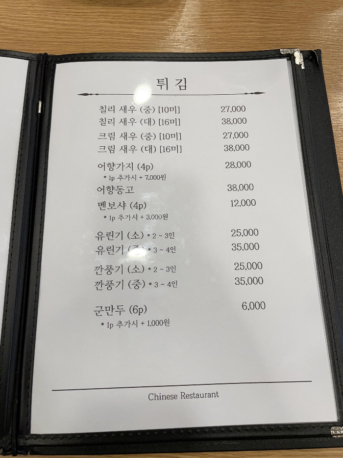 칠리새우를 중자로 시키려고 하니 많다고 하셔서 소자로 시켰다.