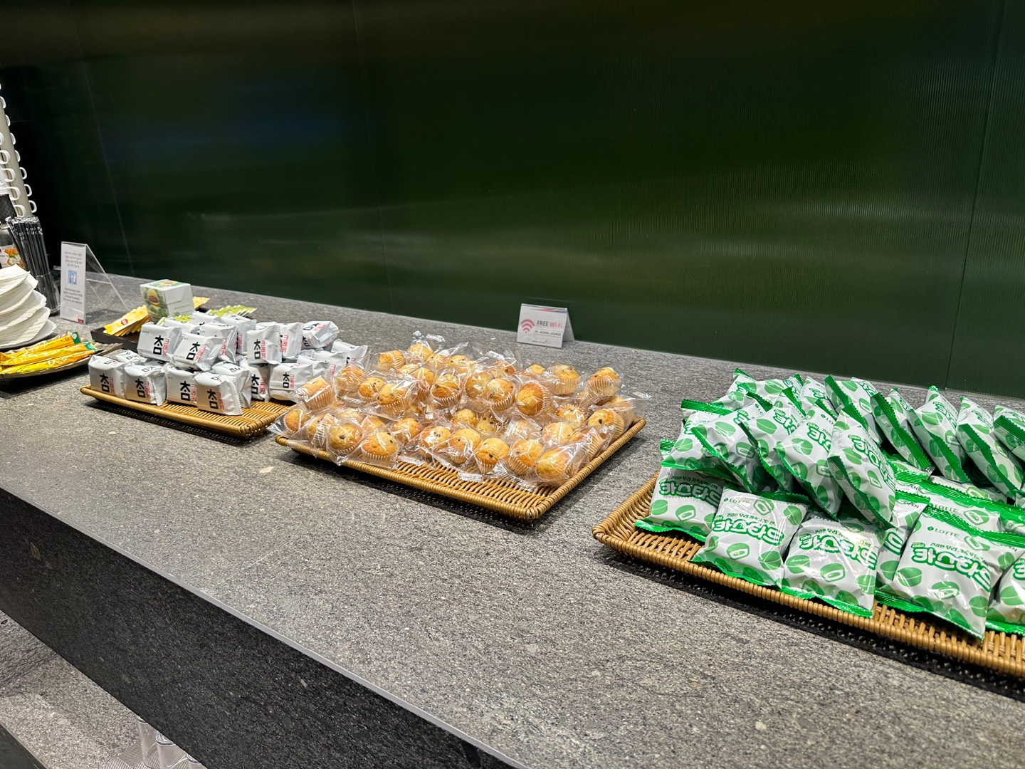 음료와 과자를 먹을 수 있는 공간이 있다.