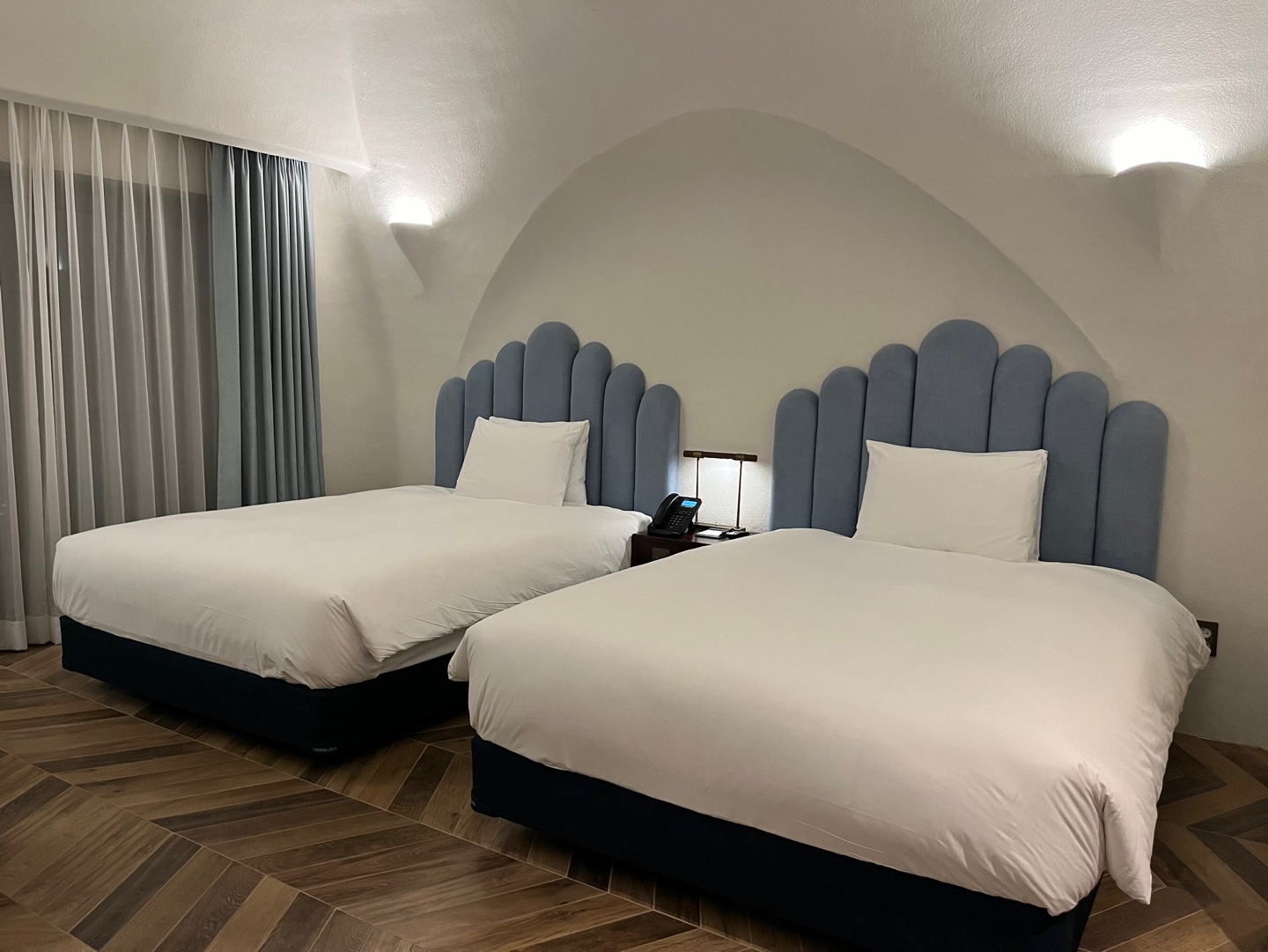 제주롯데호텔에서는 3인실 예약했을 때 하나는 싱글베드, 하나는 더블베드 있는 방을 주었는데 여긴 더블베드 두 개였다.