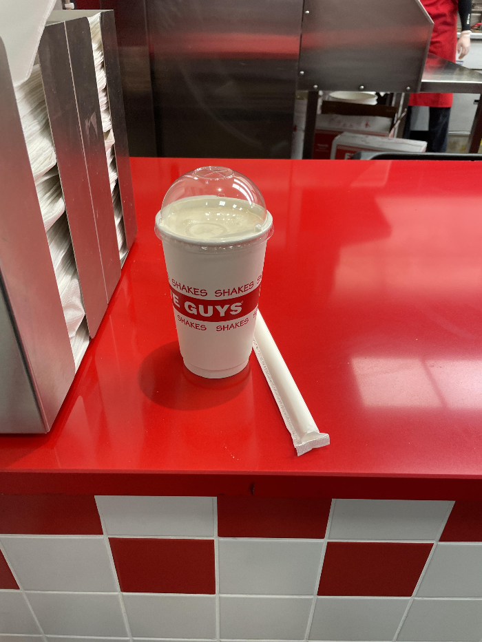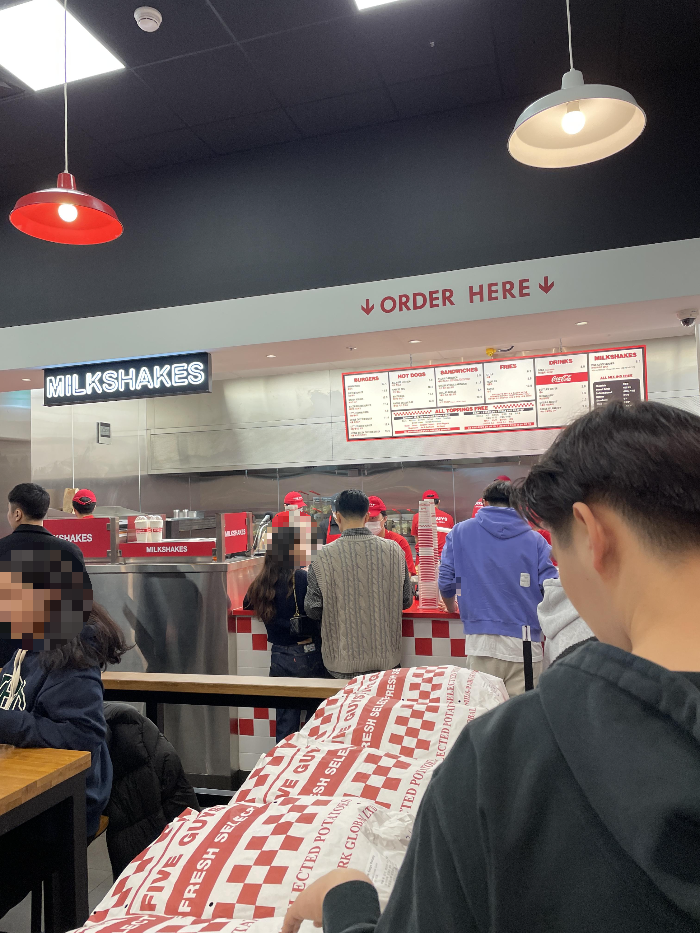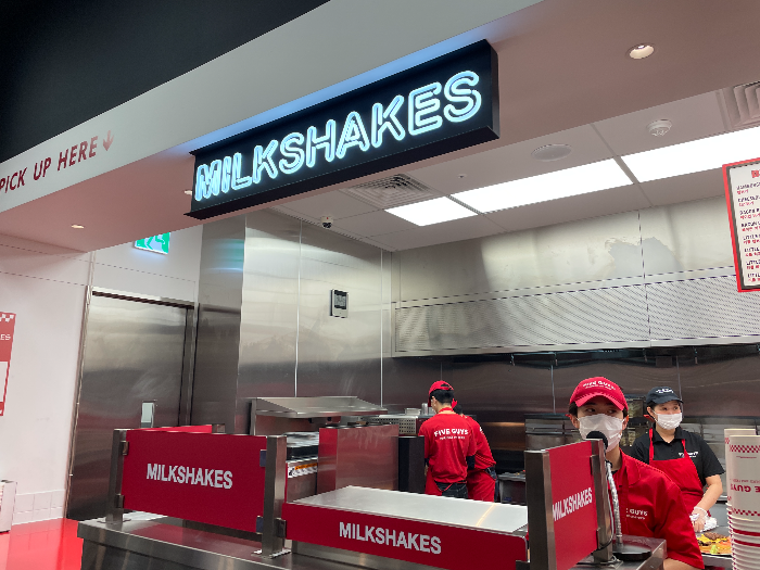 밀크쉐이크를 주는 곳과 버거를 주는 곳이 따로 나뉘어져 있는 파이브가이즈..
