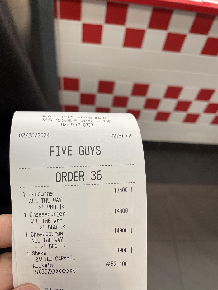 내 개인적인 총평은 파이브가이즈 버거는 경험해 봤으니, 이걸로 만족.. 이제 서로 볼일 없을듯..