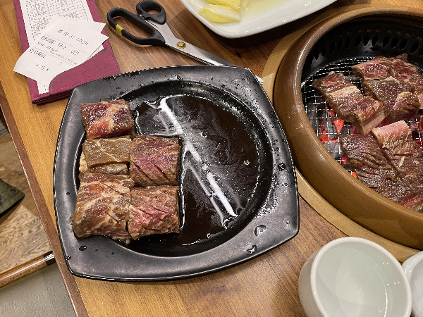 담당서버분이 정성껏 고기를 구워주시고, 앞접시에 다 익은 갈비를 한점씩 놔 주시면 소주 한잔에 갈비 한점씩 했다.