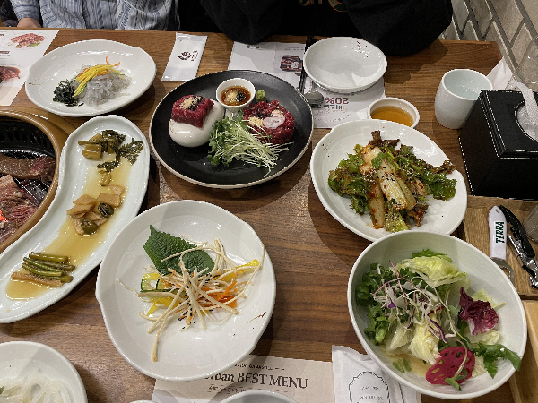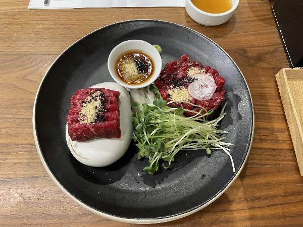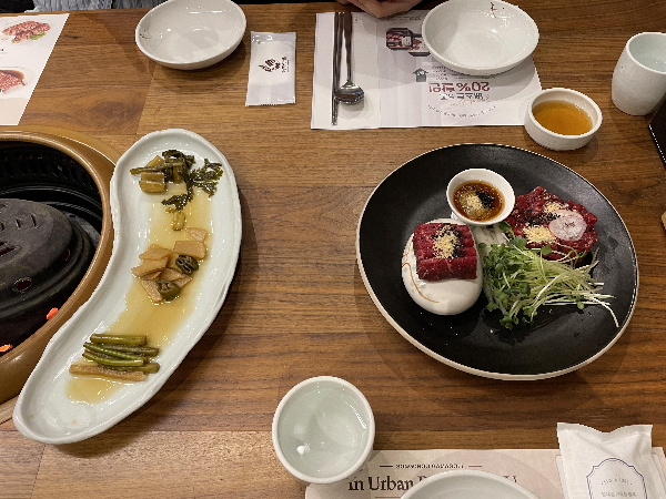 이제 셋팅도 됐으니 육회부터 먼저 먹어본다.
