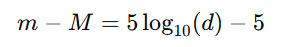 이 공식은 주어진 거리에서의 겉보기 등급과 절대 등급의 관계를 나타내며, 이를 통해 관측된 별의 겉보기 등급을 알 때 별까지의 거리를 계산하거나, 별의 절대 등급을 알 때 특정 거리에서의 겉보기 등급을 예측할 수 있다.