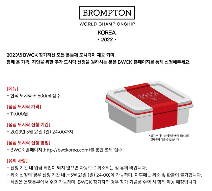 | [브롬톤자전거] 2023 BWCK 참가 기념품 정보 (0) | 2023.05.22 |