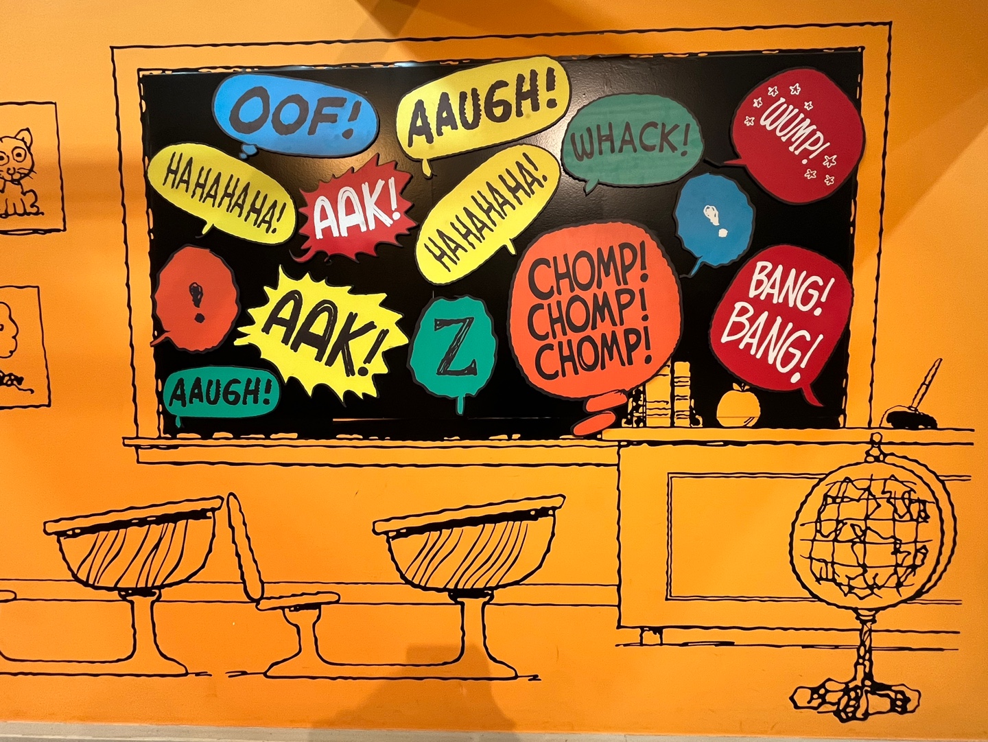 야외 가든에 있는 벤치에 글귀가 있는데 피너츠 읽은 애라면 퀴즈 내면서 가도 좋다.